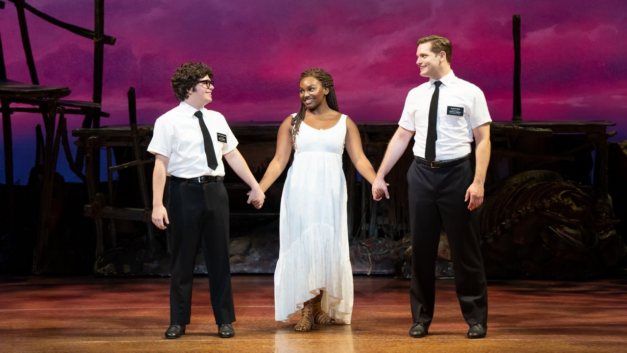 Jewell Noel, Sam McLellan and Diego Enrico in “The Book of Mormon” North American Tour. (Julieta Cervantes)